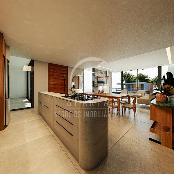 Sala e cozinha integradas (porcelanato 90x90)