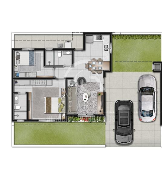 • Denominada Casa 1 medindo 64,34m² disponível em fase de construção